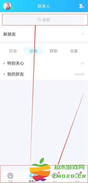 1、打开手机上的QQ,直接使用首页的搜索框搜索“成长守护平台”订阅号。