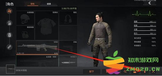 1、玩家把要给队友的装备放进背包后进入游戏,在游戏中打开背包,选择要给队友的装备后点击右下角的箭头,如图所示