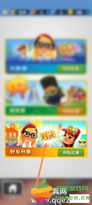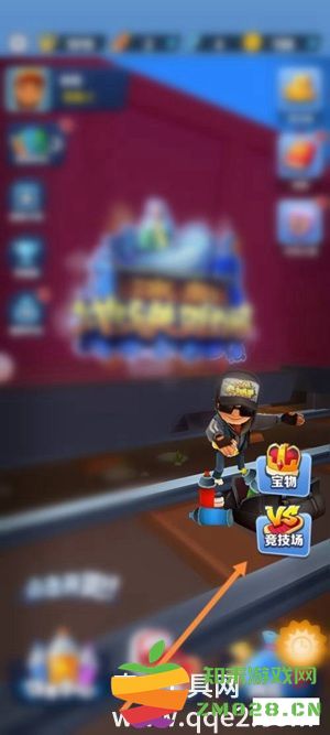 打开手机的地铁酷跑,点击下面的竞技场选项。