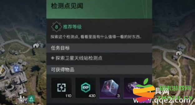 这个任务的接取地点是在代盾检测点,玩家们在落地传送塔之后往十点钟方向跑,就能够寻找到相对应的npc并且接到任务。在任务的描述中,系统会要求你把这个检测点给探索一遍,并且把这里有用的物品拿走。那么接下来第1个要探索的地方就是卫星天线,这个地方是有系统指引的,小伙伴们直接根据指引的方向走就可以了。来到指定的位置之后可以看到有一个楼梯,上去之后会看到有一个宝箱上面带着芯片锁,和这个宝箱互动即可。