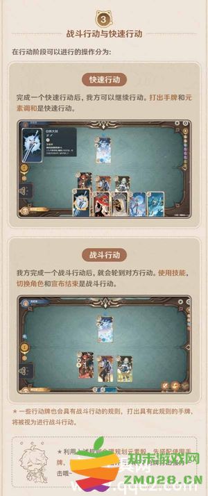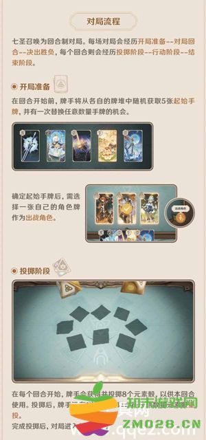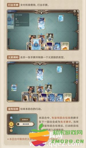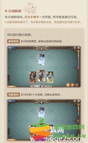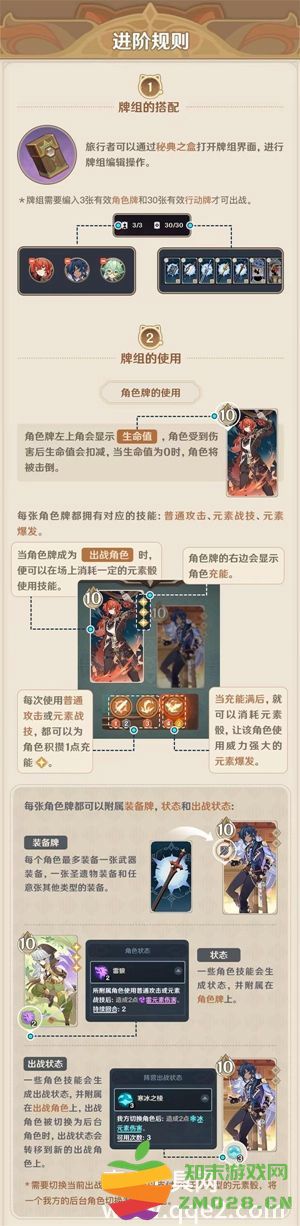 7.进阶规则如下:让大家熟悉牌组的搭配、牌组的使用、战斗行动与快速行动以及元素反应。