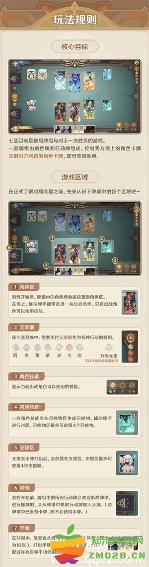 5.七圣召唤玩法规则具体如下:主要让大家知道核心目标、游戏区域、对局流程。