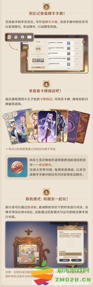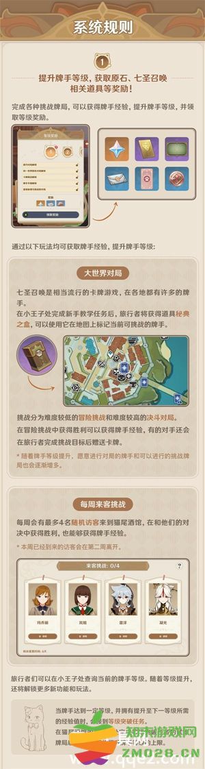 6.七圣召唤系统规则具体如下:让大家知道如何提升牌手等级、如何获取角色牌、牌手手册、卡牌商店、联机模式。