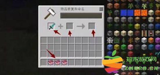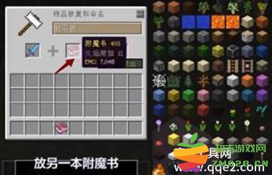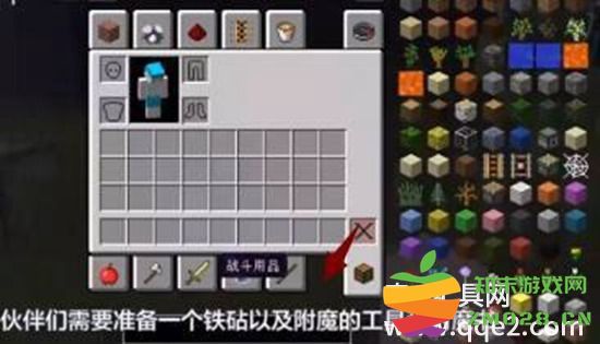 玩家先准备一个铁毡以及附魔用的工具还有附魔书。