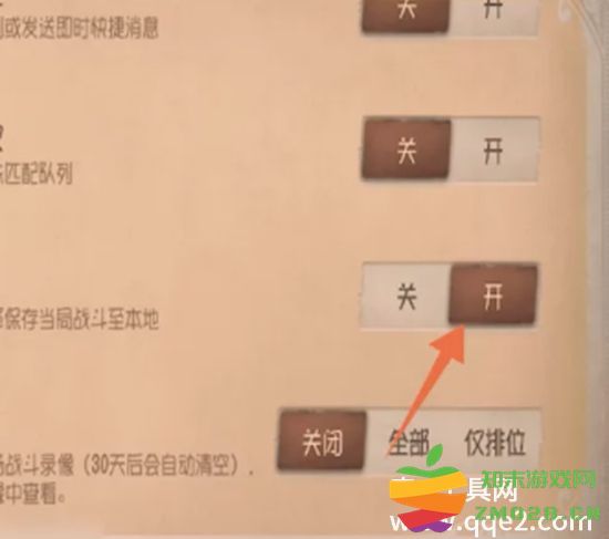 进入到设置的游戏界面后,把里面的保存战斗录像按钮打开(不然是无法保存录像的)。