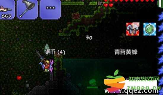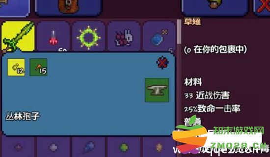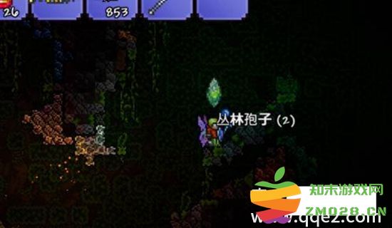 3、同时在泰拉瑞亚丛林中,会有散发绿色光芒的小种子,我们攻击种子就会获得3个左右的“丛林孢 子”材料道具。
