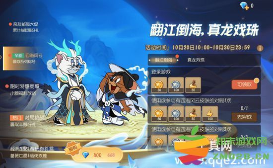 来到猫鼠追逐舞台上,库博·东海龙王带来了珍藏已久的宝藏。10月20日至10月30日,参加限时“翻江倒海,真龙戏珠”活动完成任务,就能获得包括金币、银币、知识点、星星、活跃度、邮票、皮肤碎片、雨师头像、东海龙王头像、周任务快速完成卡、东海之洋的弄潮儿称号在内的丰富奖励。小伙伴们快快打开游戏,跟龙王一同分享宝藏吧!