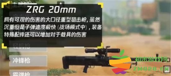 情报显示,ZRG 20mm是一把拥有可观伤害的大口径栓动狙击枪,虽然沉重,但是在使命战场中子弹速度较快,装备特殊配件还可以增加其对于载具的伤害。“口径即正义”!