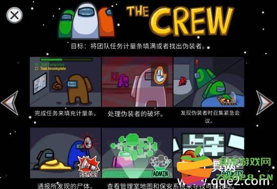 1、游戏中所有玩家将会被分为船员、伪装者两个阵营,船员需要完成船上任务来填充计量条,处理伪装者的破坏,找出隐藏的伪装者并投票逐出,当伪装者全部被淘汰后船员胜利。