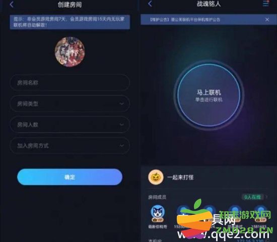 3、加入房间或创建房间后,即可在“联机”页面看到已有的房间。进入房间可以查看虚拟局域网房间内的成员,点击“马上联机”按钮即与房间内的成员联机成功。