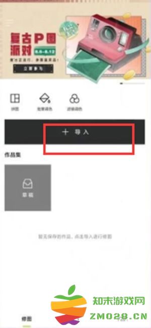 1.打开醒图APP后,选择【导入】,导入要去水印的图片