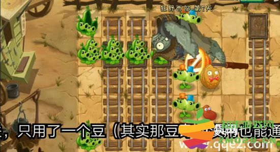 4、铁桶僵尸的血量较厚,可以放置两个巴豆对付它,合理利用坚果减缓僵尸的进攻,好让豌豆荚有足够世界消灭它