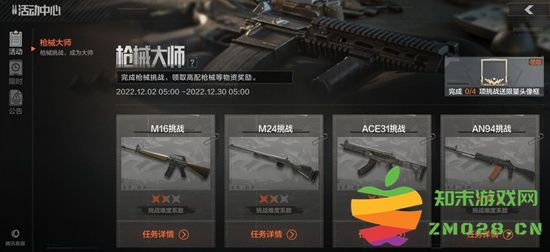 1.活动期间,先锋们可以选择开启【M16】【M24】【ACE31】【AN94】【AEK】专属枪械挑战;