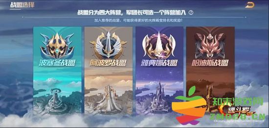 每个战区各有四个战盟,名称、徽章等均由系统预先设置。