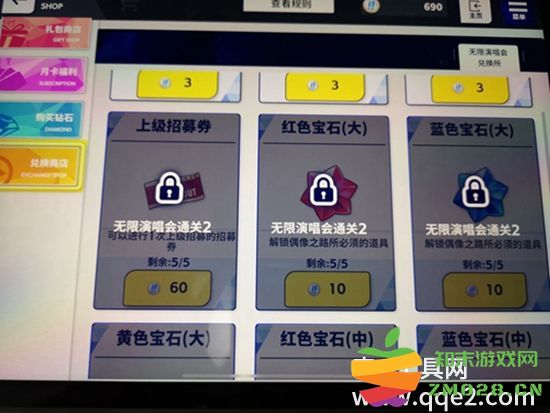 2、兑换商店:通关无限演唱会解锁大宝石,就可以进行兑换了,但是有兑换数量限制。