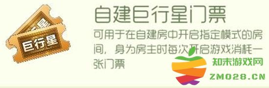 门票可用于在自建房中开启指定模式的房间,身为房主时每次开启游戏消耗一张门票。