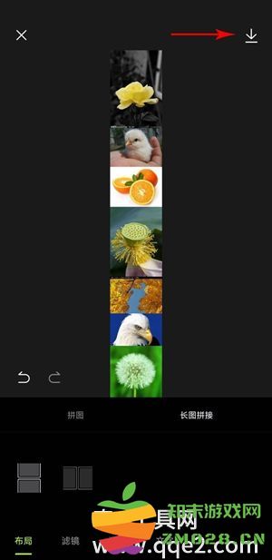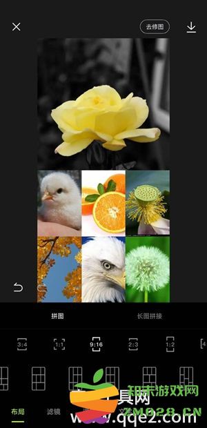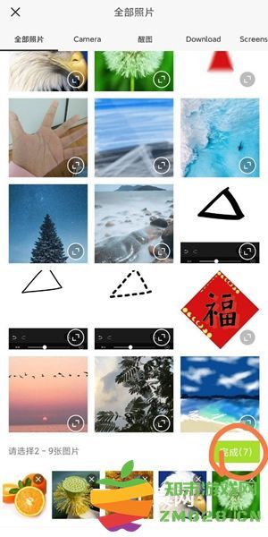 2.进入拼图界面后,选择你要拼接的图片,可以选择2-9张,然后点击【完成】
