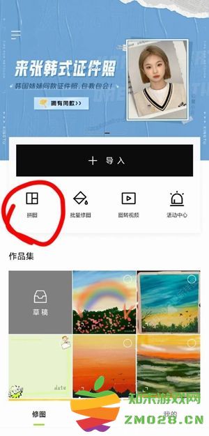 1.打开醒图app,在【导入】下方找到【拼图】