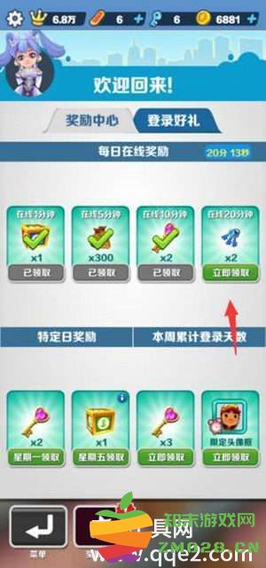 2、当你在线时间达到一定数值后,就可以,免费领取钥匙了。