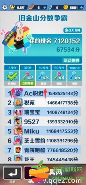 2、当我们的积分很高时,所能拿到的钥匙数量也就越多。