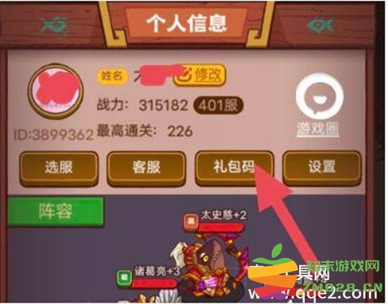 3、点击头像后就进入了个人信息,点击礼包码