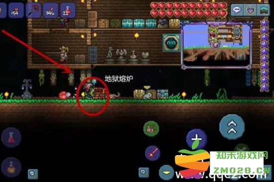 打开泰拉瑞亚手游,玩家要先获取地狱熔炉,如图。