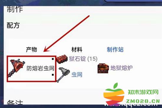 通过地狱熔炉消耗狱石锭和虫网制作防熔岩虫网。