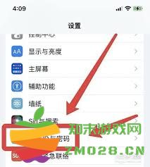 2. 向下滚动并找到“面容id与密码”选项,点击进入。