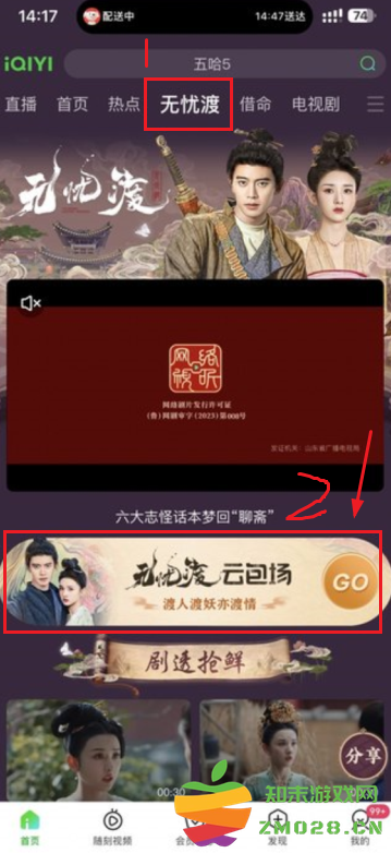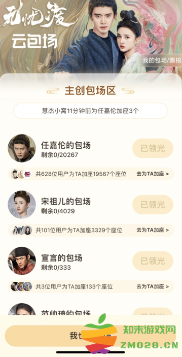 以最近热播的无忧渡为例,一起来看看怎么领取云包场: