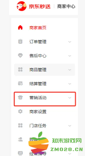 1,打开京东秒送商家端,点击商家首页--营销活动;