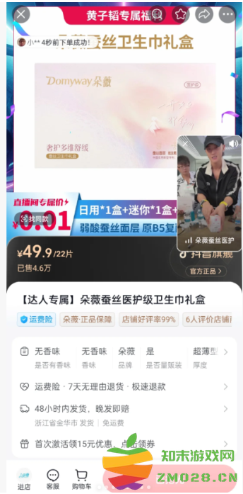 收到了黄子韬直播间抢到的卫生巾,第一时间就来给大家出测评了: