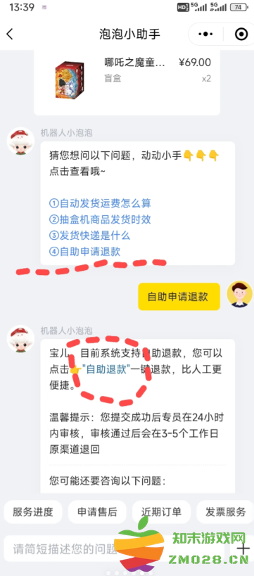 先打开ppmt小程序——我的——客服中心——联系在线客服——选择要退款的订单——选择 自助申请退款——再选择机器人 对话框里的 自助退款——然后耐心等待就行了