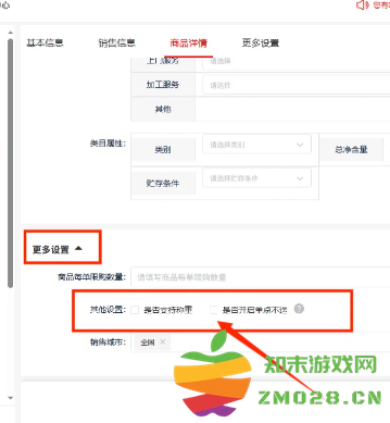电脑端,商品编辑,点进去,滑倒最下面,有个更多设置点开,就看到了。