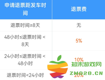 距票面乘车站开车前不足8天的车票,改签至开车前8天以上的列车,又在距开车前8天以上退票的,核收5%的退票费;