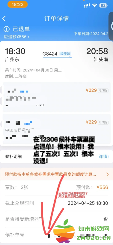 近日有小伙伴称在12306候补车票里面点退单! 根本没用!我点了五次! 五次! 根本没退!