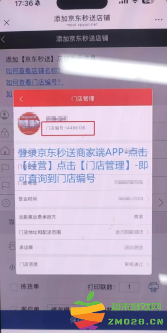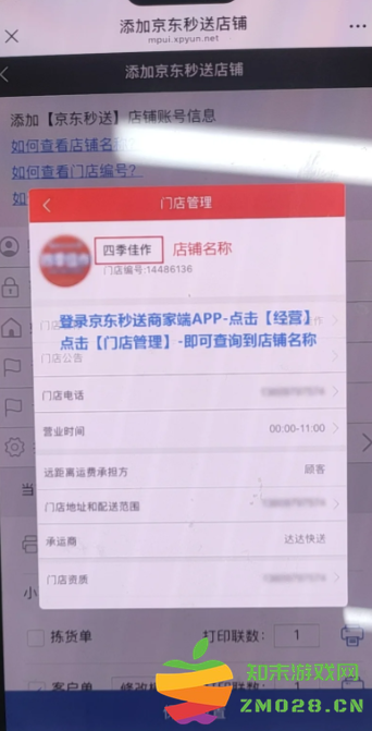 以芯烨云打印机为例,详细解答一下关于店铺名称、门店编号、商家编号的问题。店铺名称和门店编号很好找,都是京东秒送商家APP的经营-门店管理里,logo那里就是。