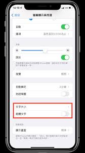 3. 启用“更大字体”或“高对比度文字”:在这里,你可以开启“更大字体”功能,通过滑块进一步放大字体;或者启用“高对比度文字”,使文字与背景之间的对比更加明显,便于阅读。