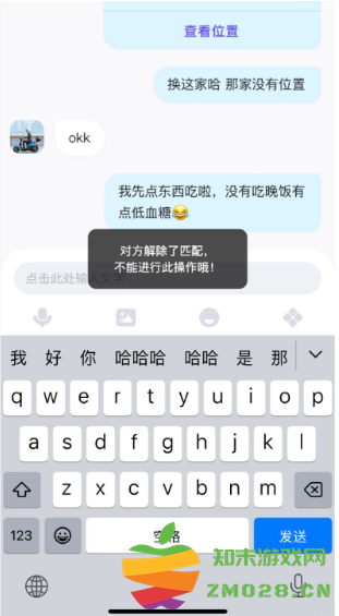 以前对方取消匹配双方都会删除对话框,现在这个版本不会了,你看不到对话框,他还能看但发消息会提示对方已取消匹配。