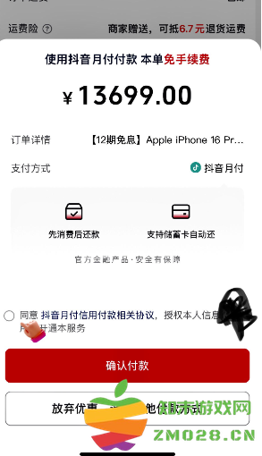 抖音月付的还款方式一共有三种。第一种是直接使用银行储蓄卡、抖音零钱或者支付宝还款。