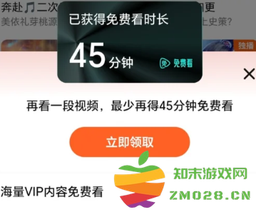 1,有的小伙伴打开腾讯视频app会自动弹出腾讯视频vip片免费看的弹窗,点击立即免费领取就可以了,按照要求完成看广告的任务,每天只需看几十秒广告,就可以获得几小时的免费看剧的权益;