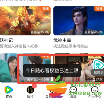腾讯APP,如图1首页右下角有个“免”的图标,点击看广告可以得免费看时长!
