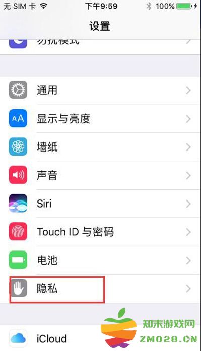 2. 向下滚动屏幕,找到并点击“隐私”选项。