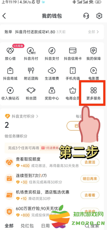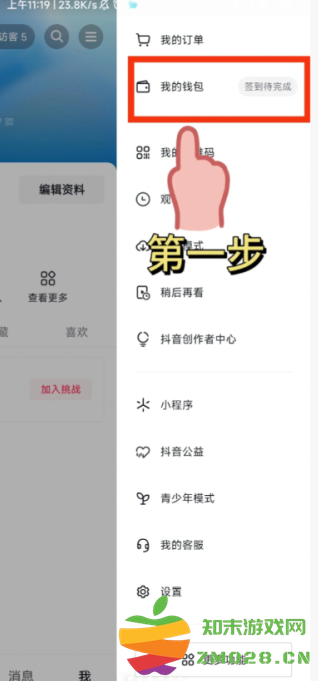 首先我们打开抖音,点击我,点击主页设置,点击我的钱包;