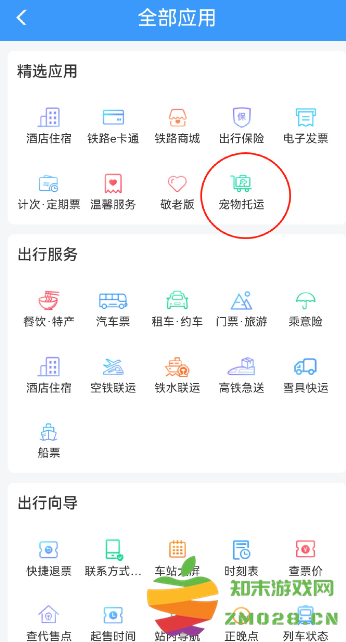打开12306看到全部应用里宠物托运;