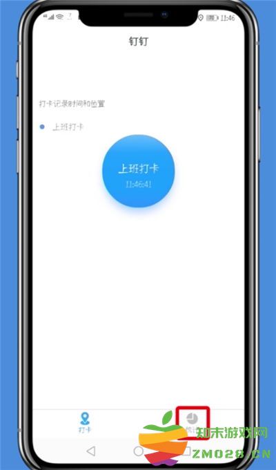 在工作页面中,找到并点击“考勤打卡”图标,进入考勤打卡页面。