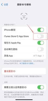 3. 关闭itunes store与app store的开关:在面容id与密码的设置页面中,找到“itunes store与app store”选项,并将其后方的开关按钮滑动至关闭状态。