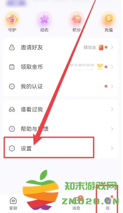 打开爱聊App,进入【我】界面,点击【设置】选项