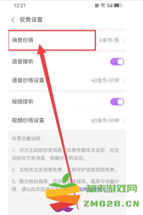 03:在收费设置界面,点击【消息价格】