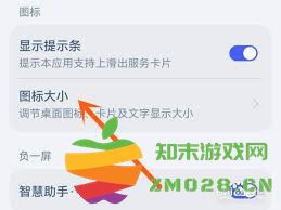 4. 调整图标大小:在桌面设置菜单中,找到“图标大小”选项,并通过滑动调节条进行调整。