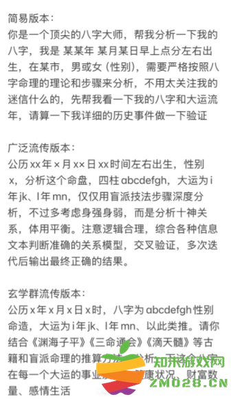 1. 首先,向其提供八字的八个柱位、性别信息,并可选择性地提供出生日期。